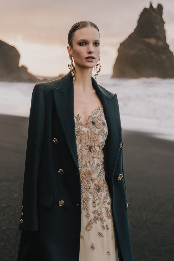 ESCADA Mainline is set on “Vik / the Black Beach”, one of the world’s most beautiful and enchanting beaches. The inherent power of the white waves beating across the black sand transports the observer into a universe of natural forces.
