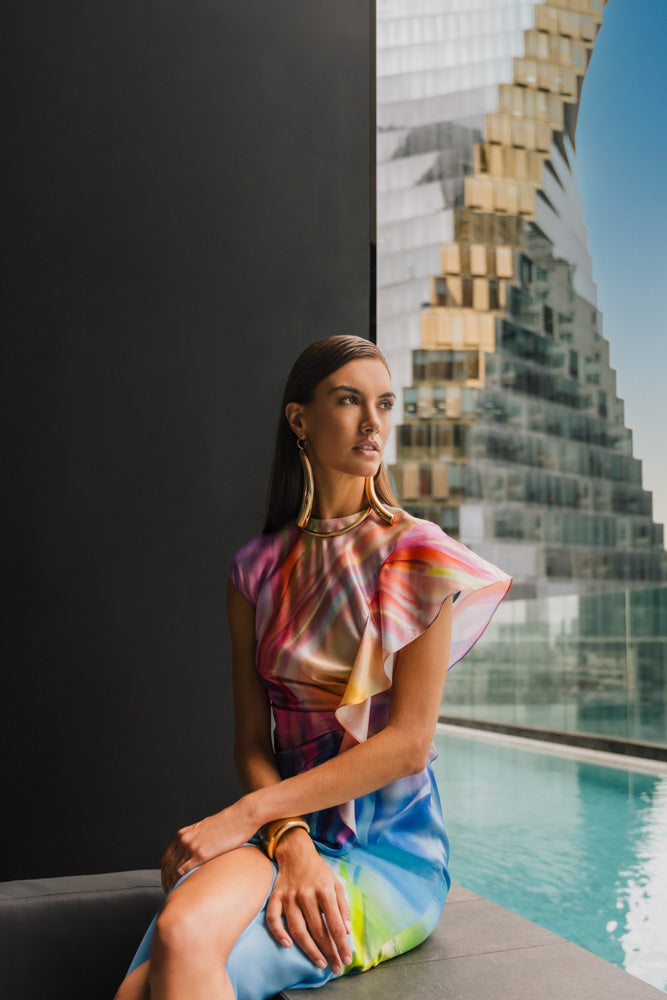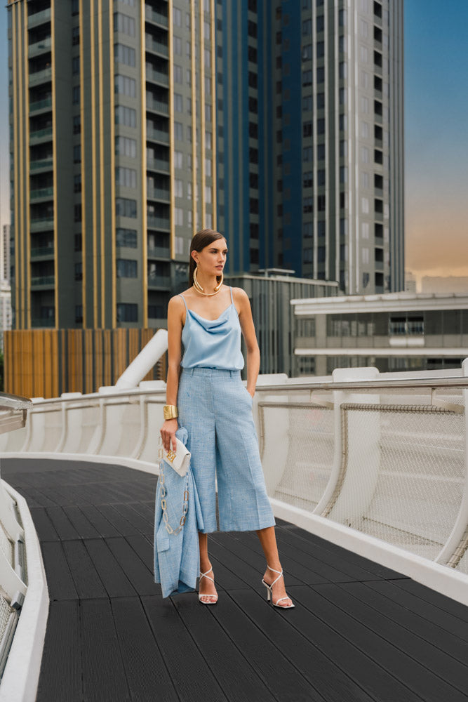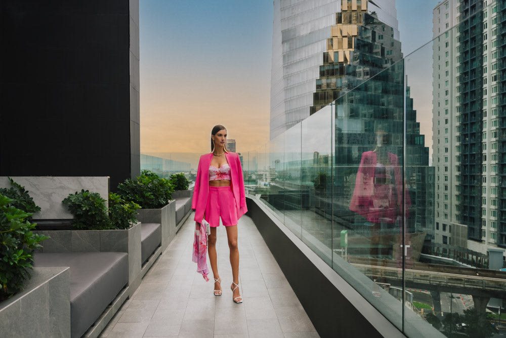 Ronja displays herself above the Bangkok skyline for ESCADA ML. The many sky terraces with a stunning view of the city’s skyline offer a luxurious refuge from Bangkok’s bustle. Even in such a large metropolis, there is time to relax, enjoy a drink, and look absolutely stunning in the new ESCADA Spring Summer collection. The focus of the collection is on flowery motifs, pastel colors, and natural fabrics for the modern woman who wishes to embrace the warmth and vibrancy of the season. A selection that will stimulate all of your senses.