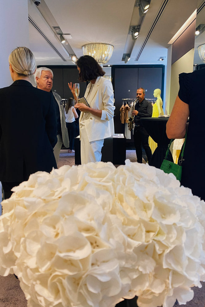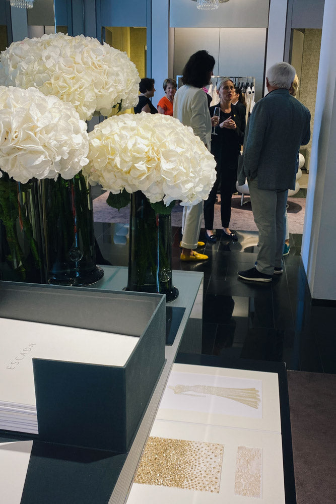 Our design director, Ioana De Vilmorin, shares insights into the collection's creation over a glass of champagne and live music. The complex embroideries, appliqués, and procedures that go into ESCADA apparel make each piece seem unique.