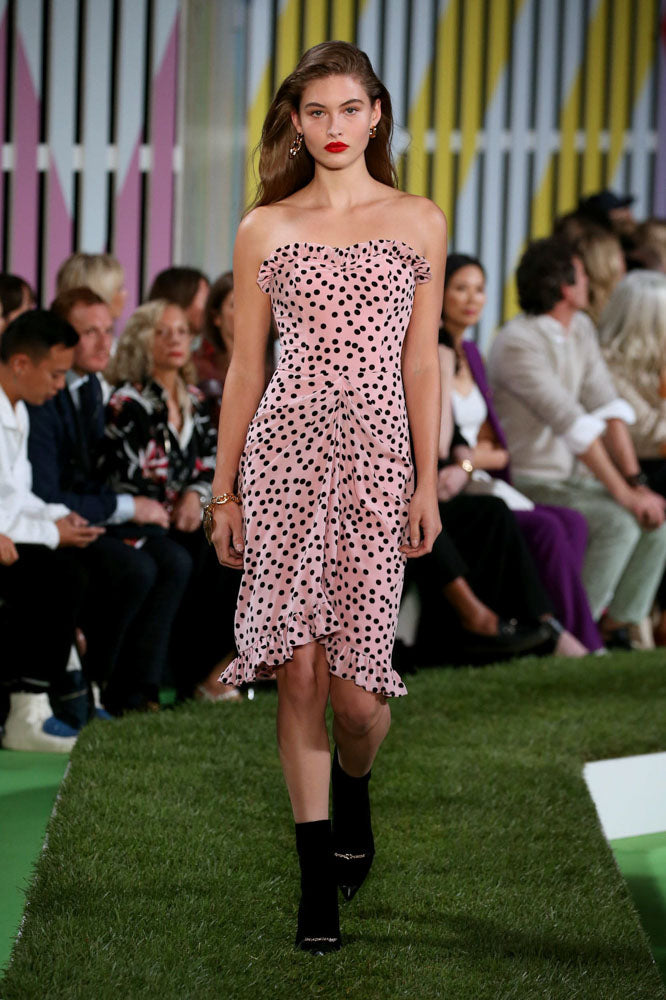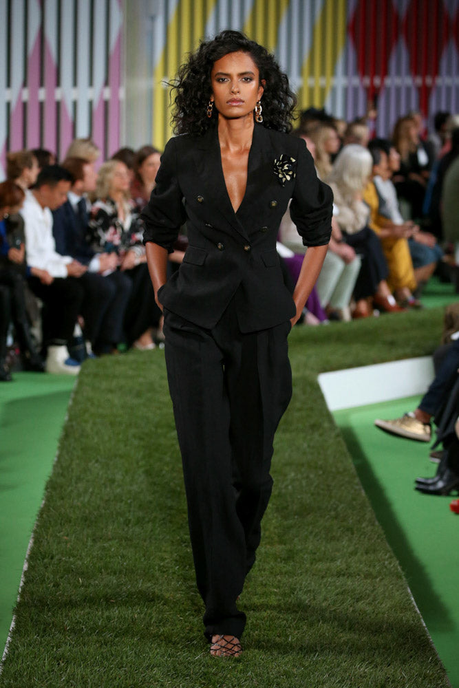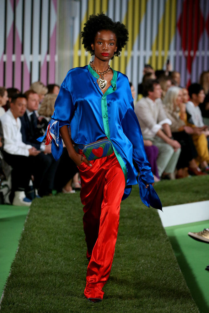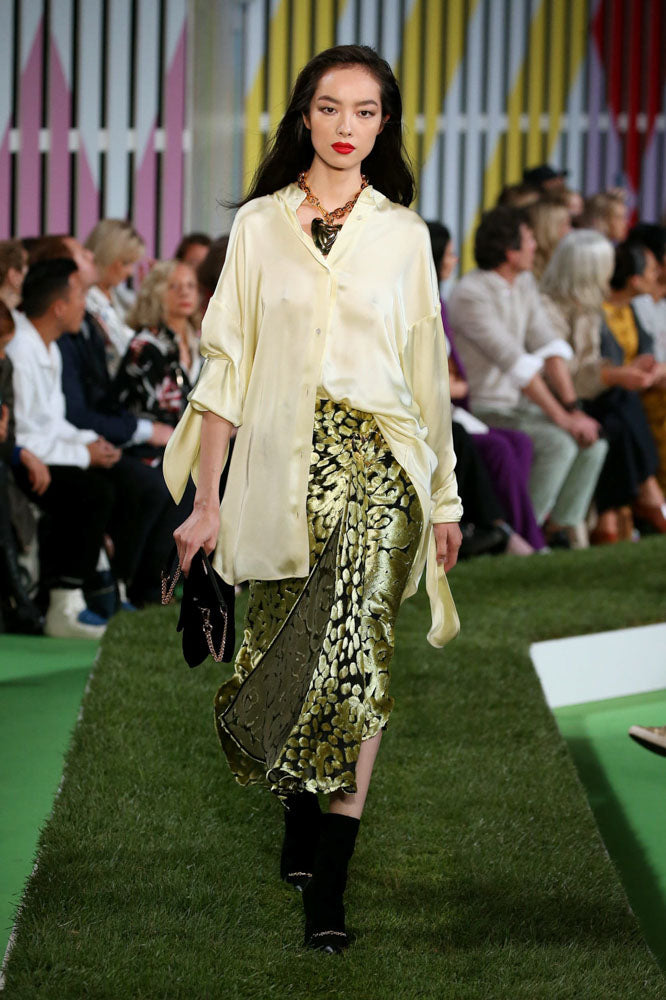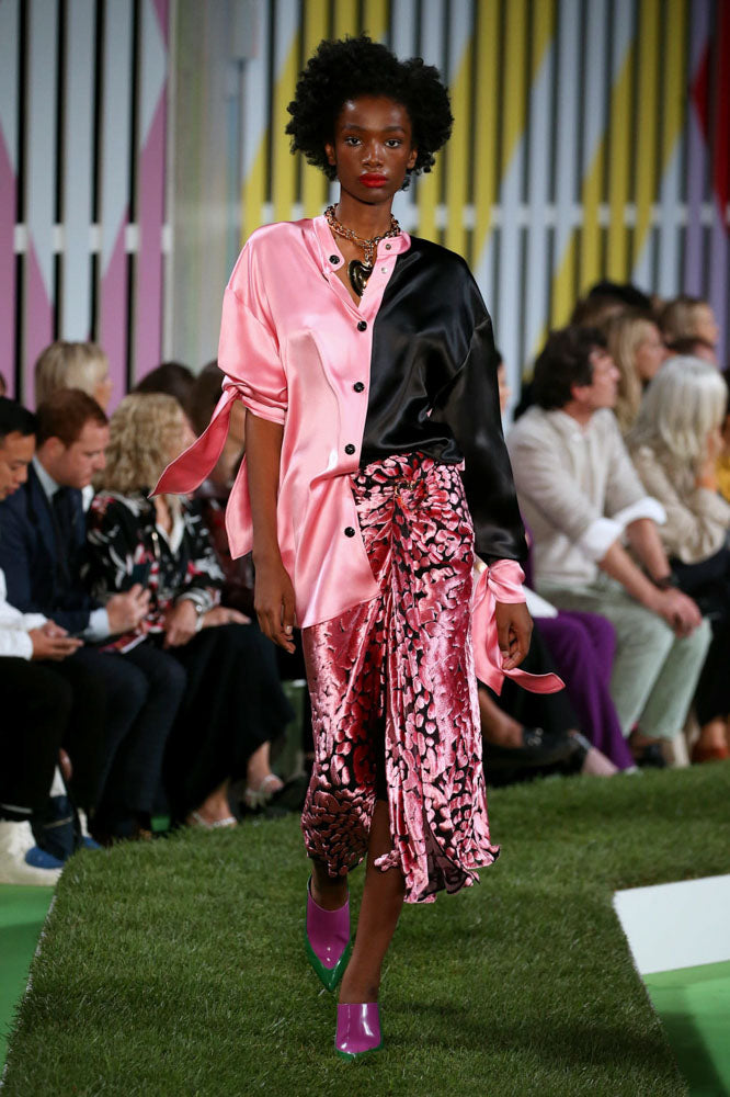 For Escada’s 40th anniversary show at New York Fashion Week, global design director Niall Sloan delved into the brand’s extensive archives for inspiration. He revived its original typographic logo from 1989 to create a jewel-coloured leather coat, referenced Princess Diana with power-shouldered tailoring and paid homage to Escada’s equestrian roots with silk, jockey-inspired dresses.